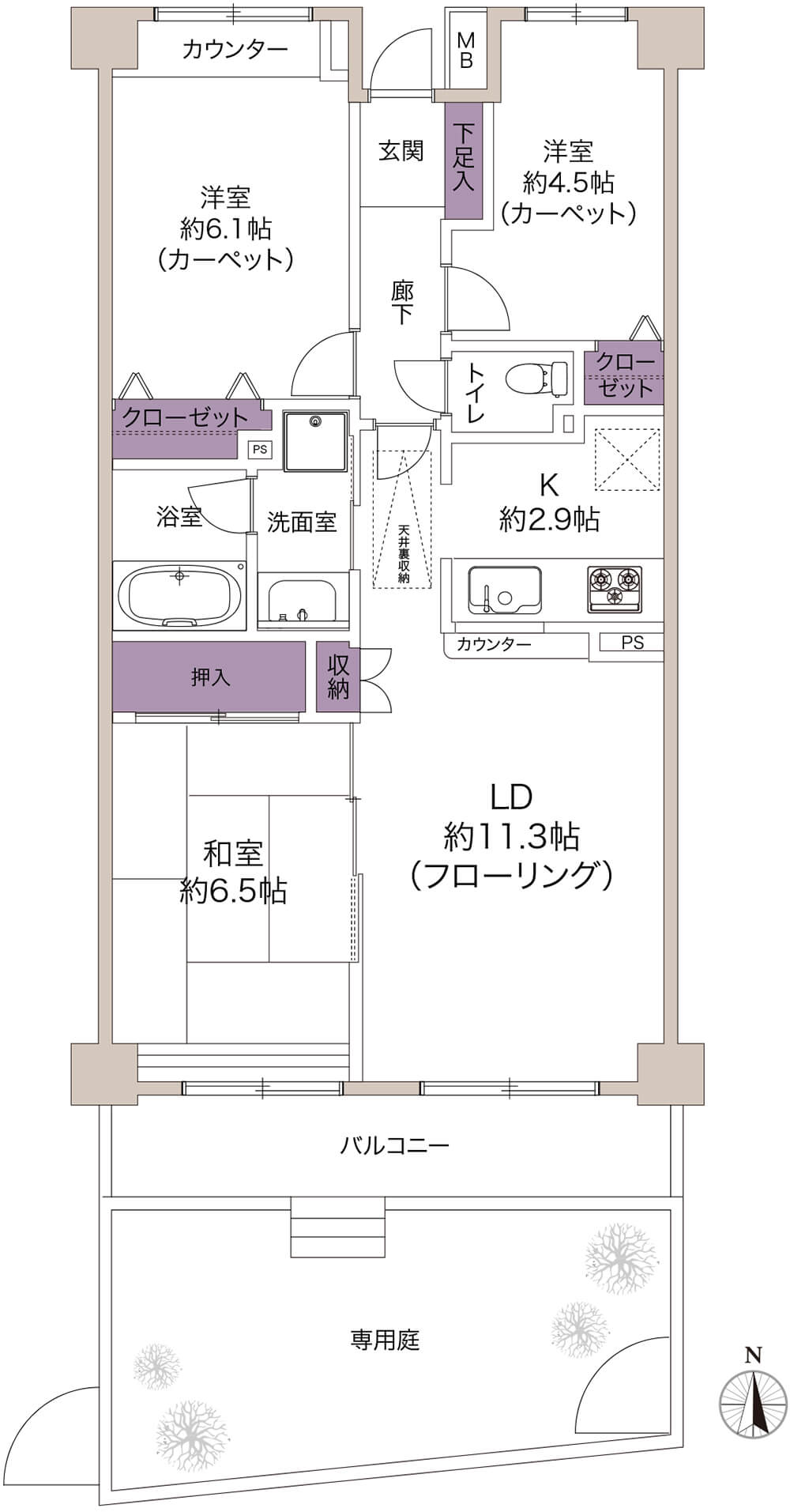 3LDK 専用庭付き