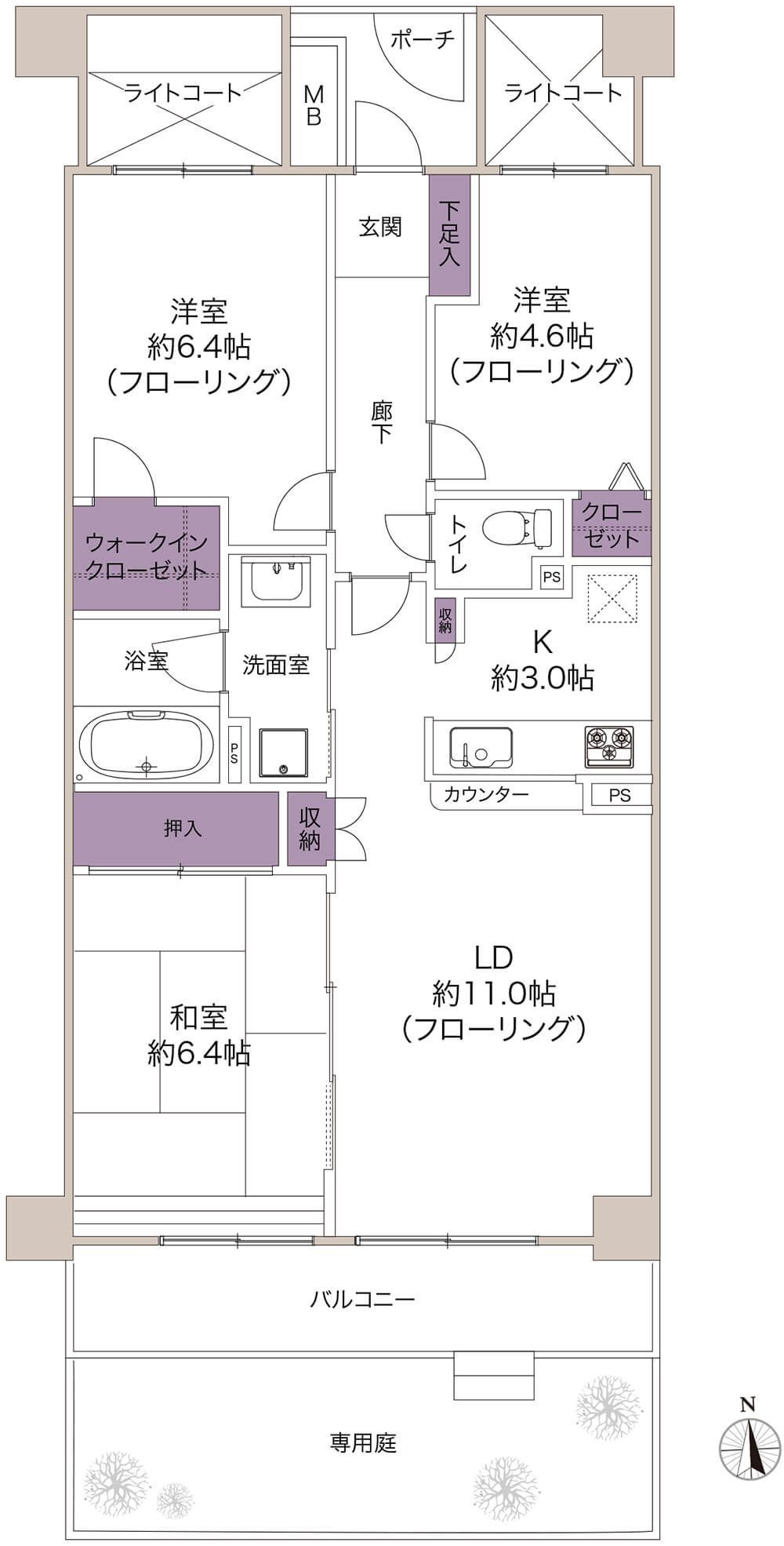 3LDK 専用庭付き